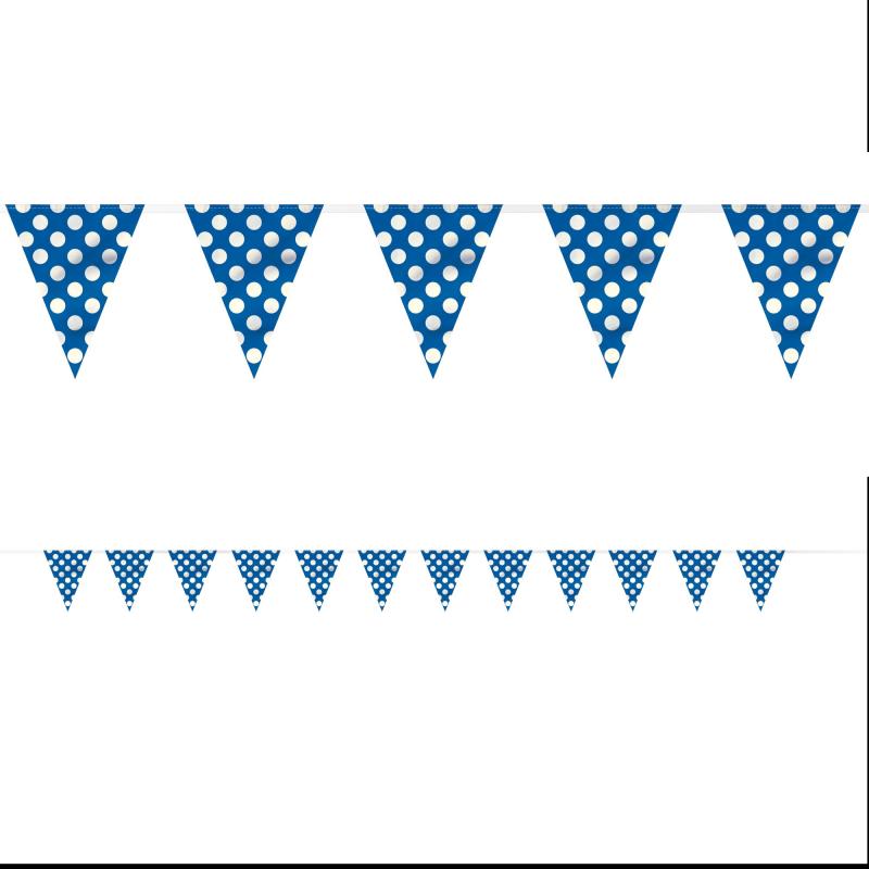 Blå flagguirlande med hvide prikker