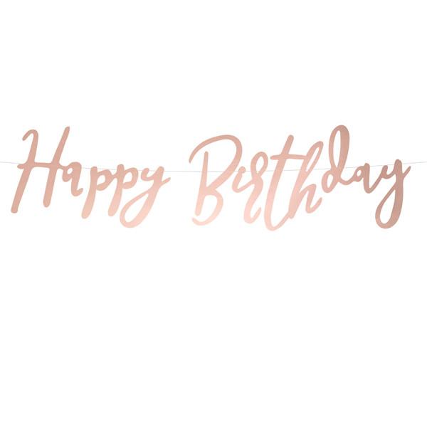 Flot guirlande med teksten ‘Happy Birthday’ i rosegold.Hæng guirlanden i vinduet, ved buffeten eller over gavebordet.Guirlanden er 62 cm lang, og hvert bogstav er 16,5 cm højt. (Læs mere)