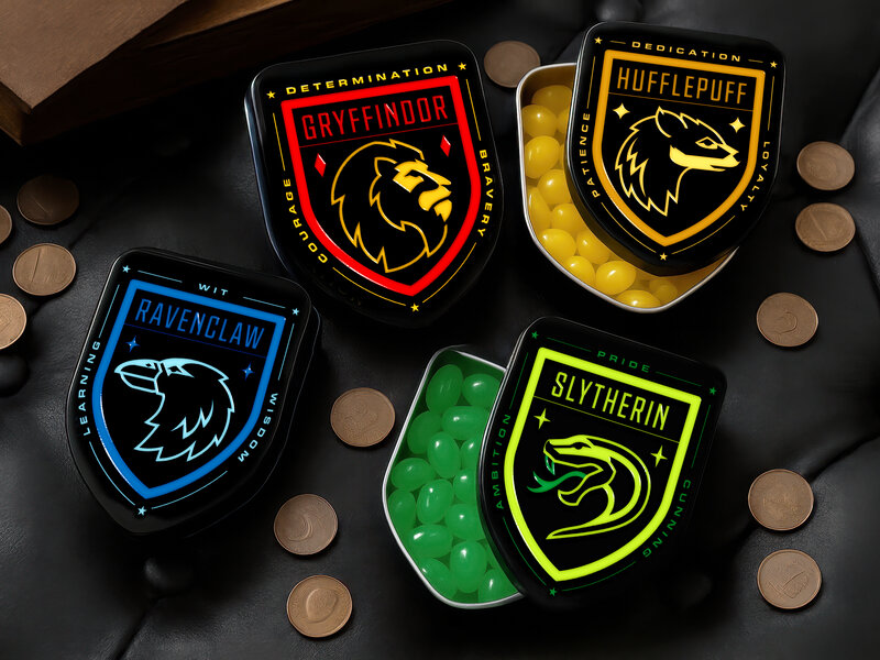 Hug til og smag magisk lækkert Harry Potter- slik! Jelly Beans’ne ligger i flotte metalæsker, der repræsenterer de forskellige huse på Hogwarts.Her finder du Slytherins grønne æbler, Hufflepuff-citroner, Ravenclaw-bær og selvfølgelig Gryffindors Jelly Bea (Læs mere)