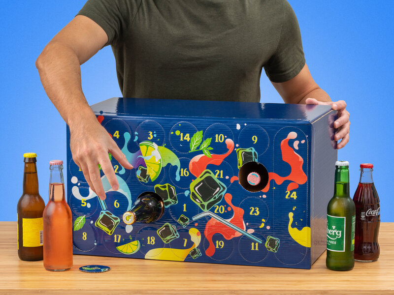 Forkæl en, som er tørstig, med en drikkevarekalender! Sodavand, cider eller måske hjemmelavet saft? Hvad du fylder kalenderens rum med, er helt op til dig – det kan man da kalde en personlig gave! Kalenderen rummer fireogtyve flasker, er fremstillet i pap (Læs mere)